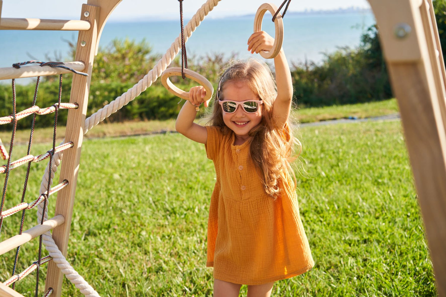 Acest complex sportiv multifuncțional din lemn va oferi copilului dumneavoastră multă bucurie și plăcere, va face timpul liber distractiv, interesant și incitant. Copiii vor urca pe scară, vor aluneca pe tobogan și se vor atârna pe inelele de gimnastică. Este un instrument excelent de antrenament muscular care îi va ajuta să-și dezvolte puterea corpului. În plus, îmbunătățește abilitățile sociale prin predarea formării echipei și a gândirii critice. Creativitatea este, de asemenea, stimulată de acest produs, deoarece încurajează relațiile prietenoase și timpul împreună în familie. Dacă ai acasă un copil activ și agitat, acest complex de locuri de joacă va fi cel mai bun cadou pe care îl poți oferi lui și ție!